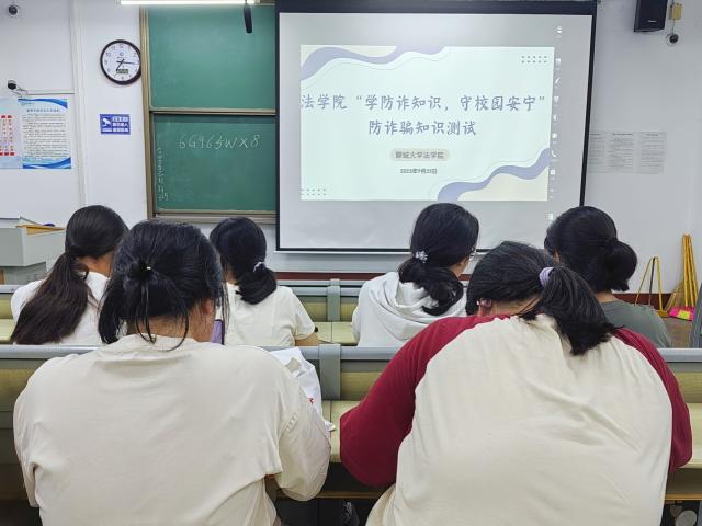 在现场测试环节,学生在相关工作人员的细心指导下,有序入场就座并进行答题,通过回答单选、多选以及案例分析题等问题,认识校园常见的“虚假校园贷”“冒充客服退款”“兼职刷单诈骗”等高频诈骗场景,明晰有关基础防诈知识,并学会利用自身法学专业,不断提高辨别诈骗、规避风险的能力。随后,学生相互分享交流,表示参与本次测试真正感受到诈骗隐匿性与严重危害性,将在生活中灵活运用识诈技巧,时刻保持警惕,踏实践行“防诈于心,防诈于行”,为共同营造安全和谐的校园环境贡献力量。